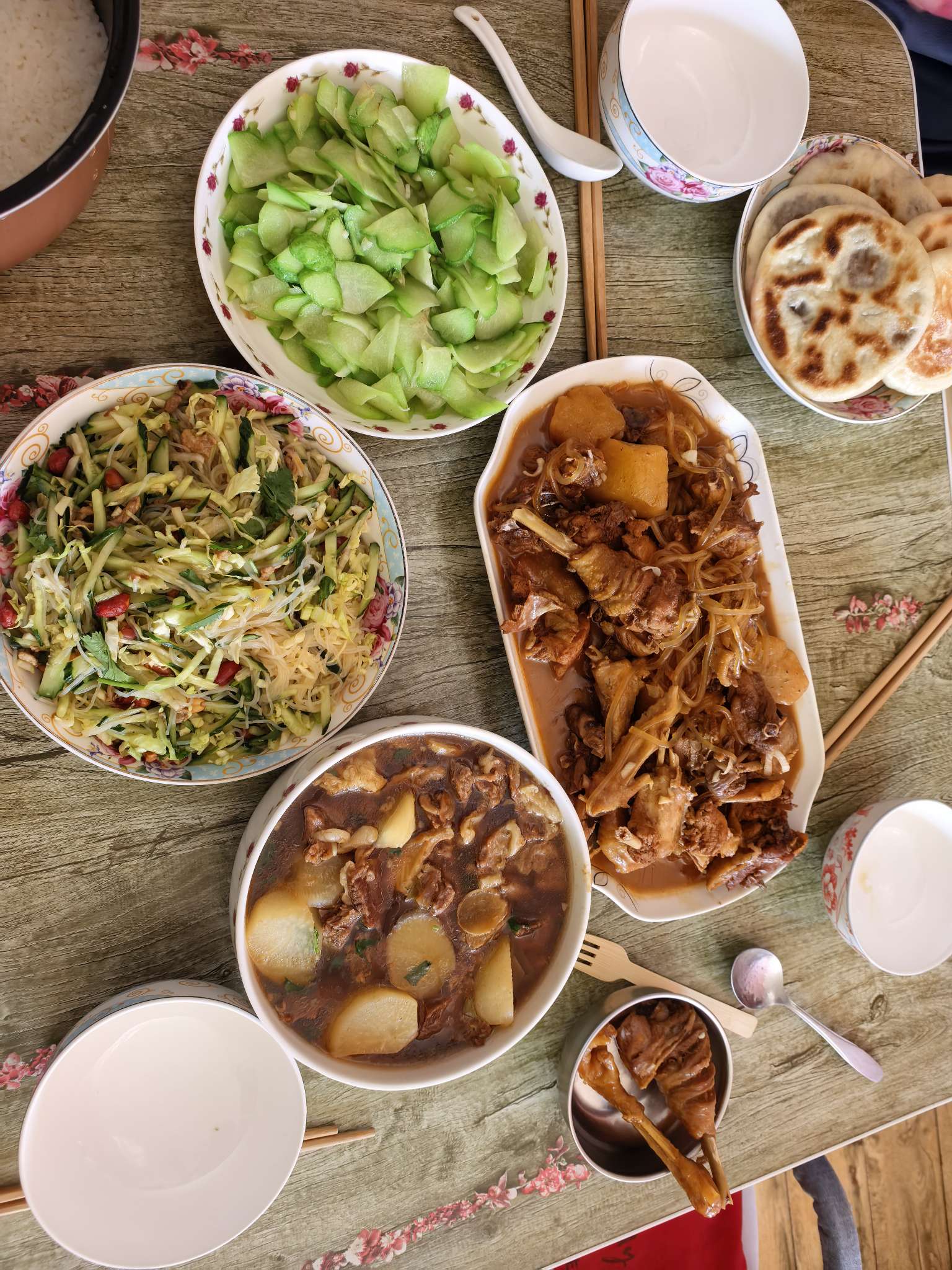 吃吃喝喝,今天小弟一家来啦,做了几个菜,妈妈做的,牛肉真是好吃,汤也好喝,妈妈手艺越来越好啦,厉害👍