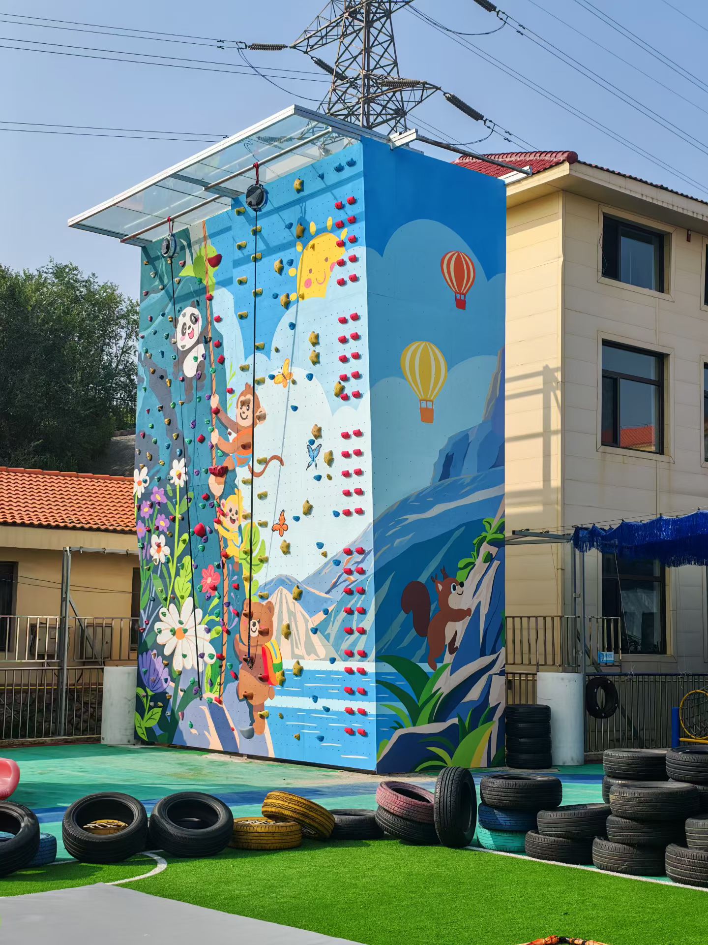 攀岩墙完成,孩子们新的“小冒险乐园”