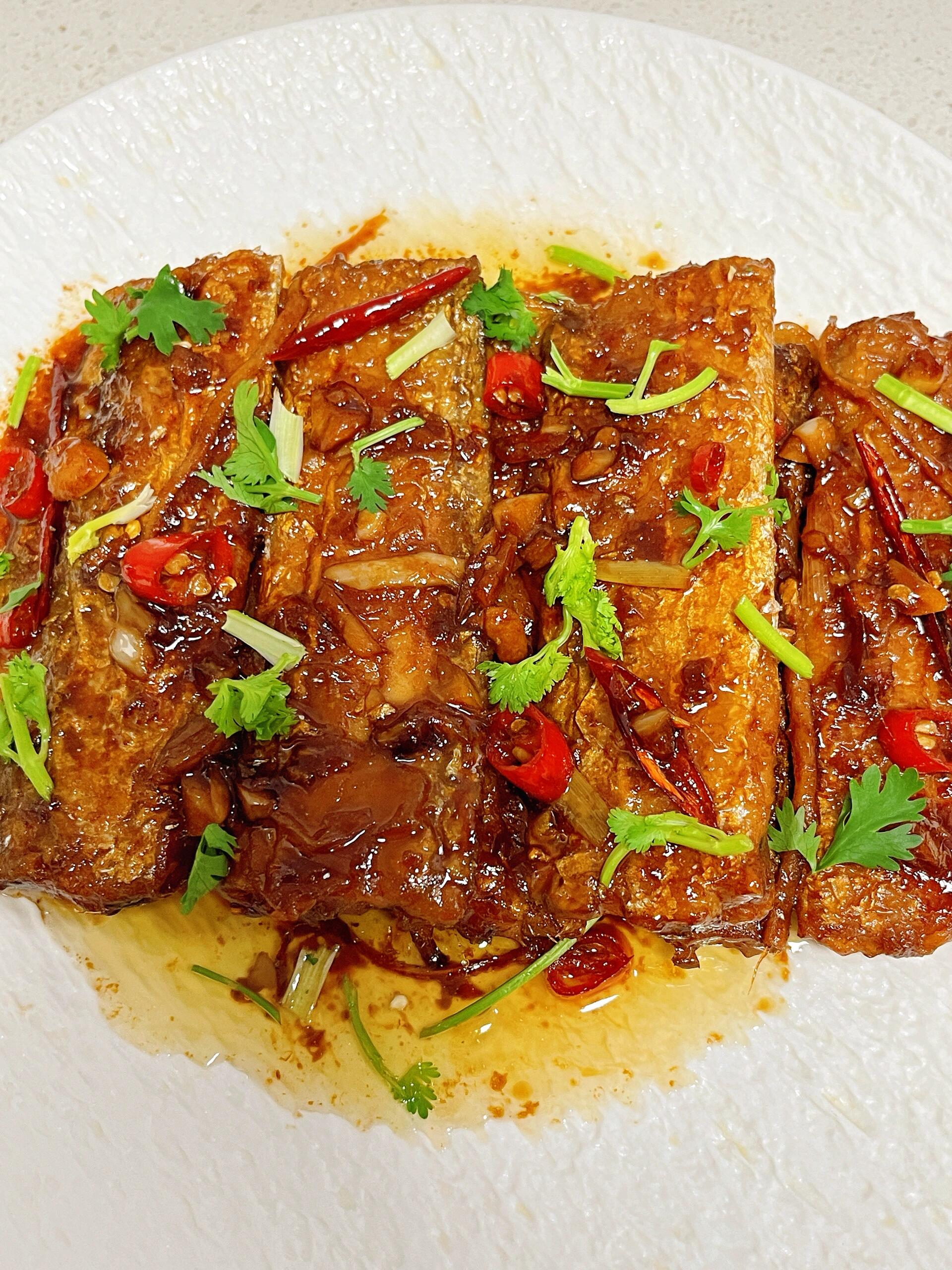 红烧带鱼这样做好吃 一、处理与腌制 1. 带鱼去除内脏,清洗干净后沥干水分。 ​ 2. 加入少许葱姜、料酒,抓匀后腌制10分钟去腥。   二、裹粉煎鱼 1. 准备适量面粉,将腌制好的带鱼两面均匀沾上面粉。 ​ 2. 锅中倒油烧热,放入带鱼,煎至两面金黄后盛出备用。   三、调汁 1. 调料汁:碗中加入2勺生抽、少许老抽、料酒、蚝油、1勺白糖、2勺香醋,搅拌均匀备用。 ​ 2. 备料:切好葱姜蒜、干辣椒、小米辣,备好香菜段。   四、焖煮收汁 1. 锅中留底油,爆香葱姜蒜、小米辣,加入少许十三香提味。 ​ 2. 倒入煎好的带鱼,再淋入调好的料汁,加少许热水没过食材。 ​ 3. 盖上锅盖,文火焖煮10分钟入味。 ​ 4. 撒入干辣椒,开大火收浓汤汁,最后出锅撒上香菜即可。#带鱼好吃😋# # #