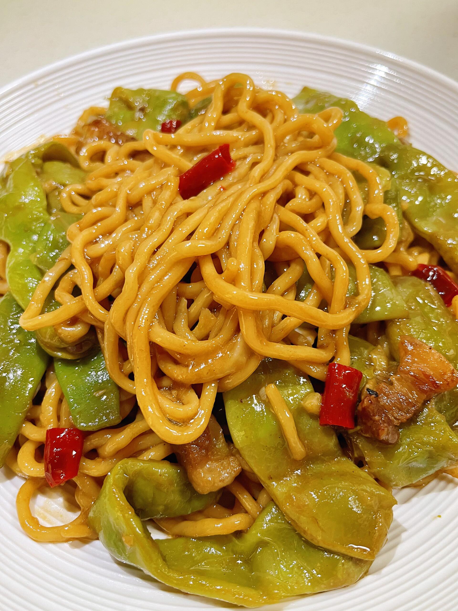 五花肉、豆角、鲜面条