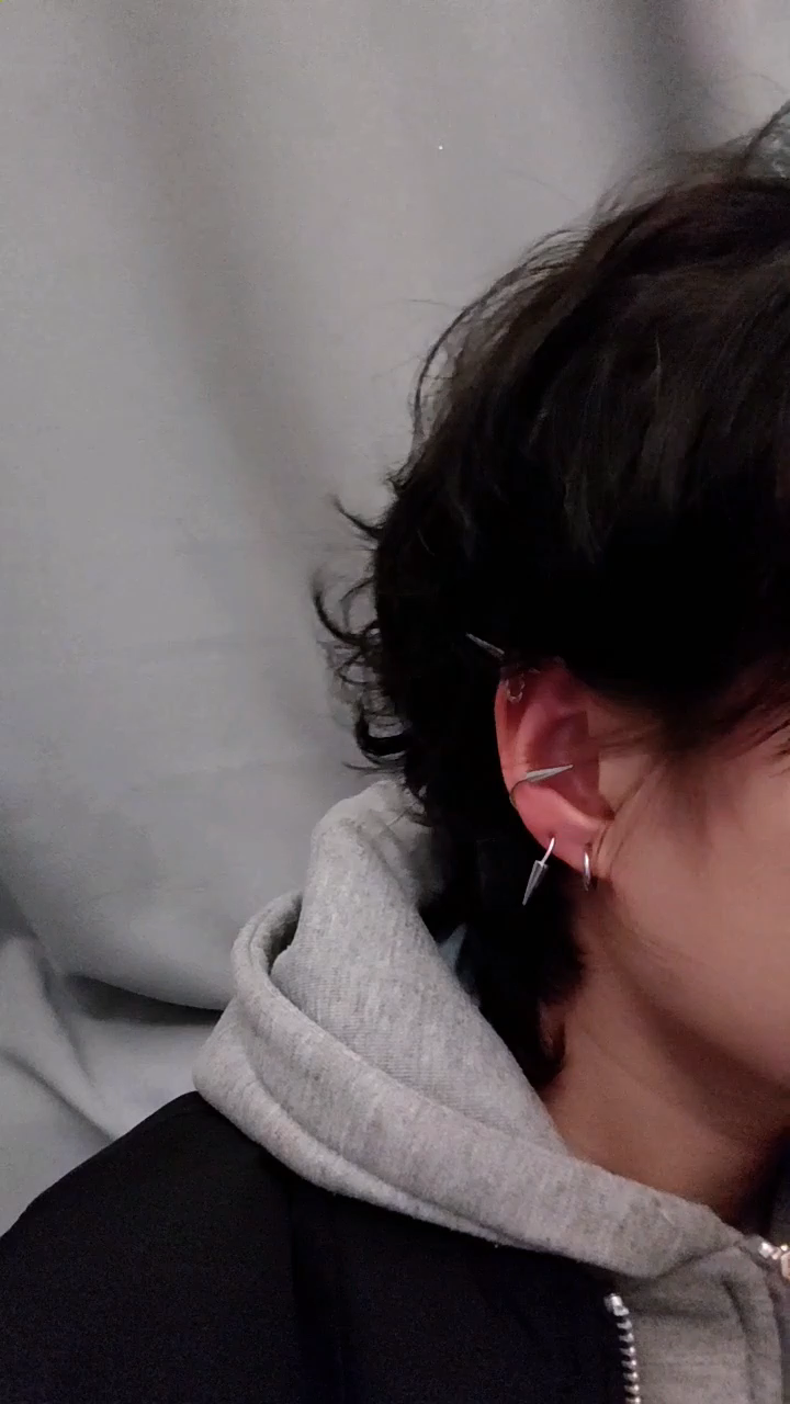 耳环 这个耳洞打了快要10月才能磕磕绊绊的带上耳环,上一次戴是鲜血淋漓的,朋友说这个耳洞没长好,现在终于可以戴上了,虽然另一边已经愈合,但没关系只有一边带也很有个性。٩( 'ω' )و (╭☞•́⍛•̀)╭☞