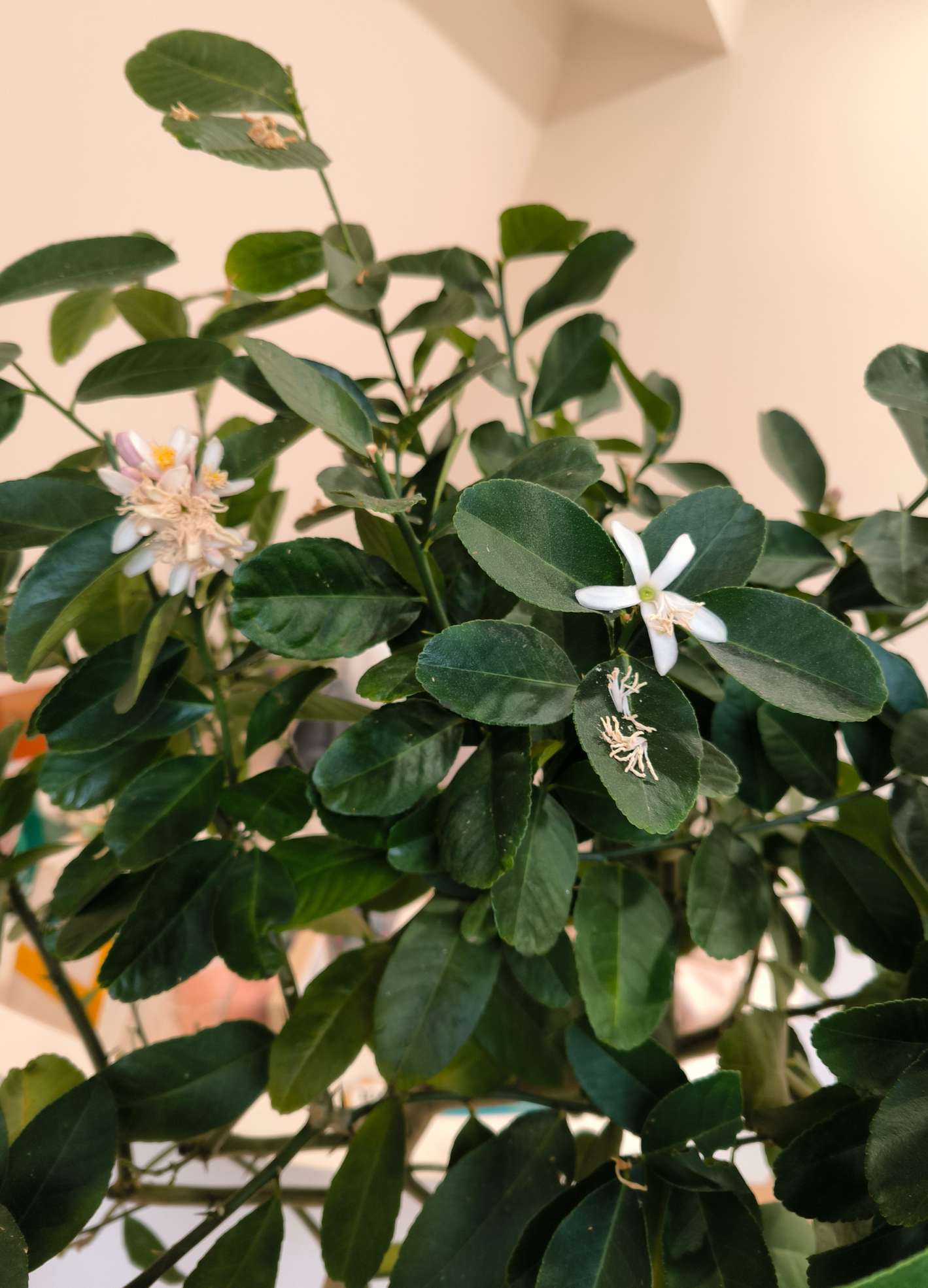 春天到了柠檬树开花发芽了。