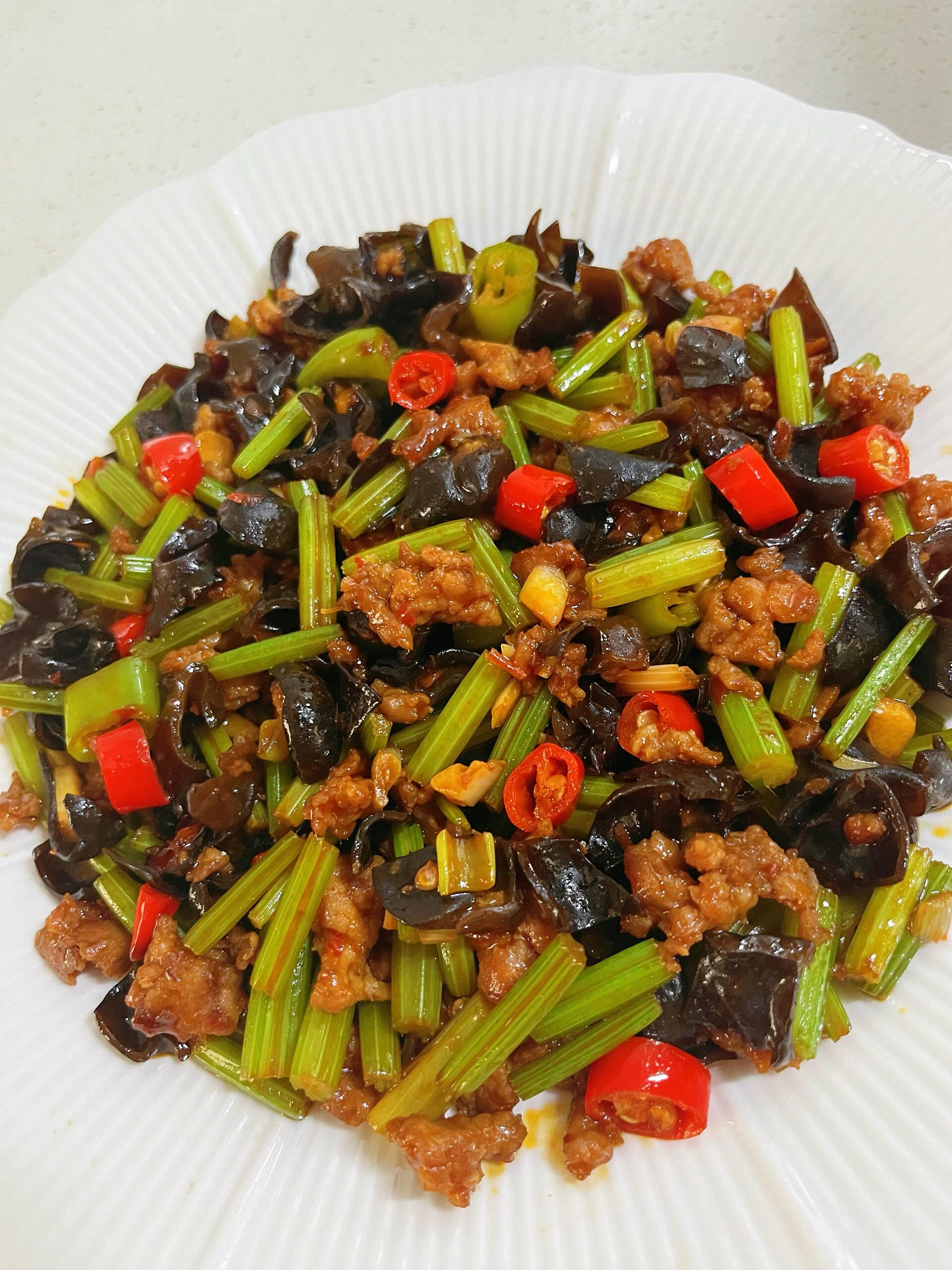 芹菜、干木耳、瘦肉末