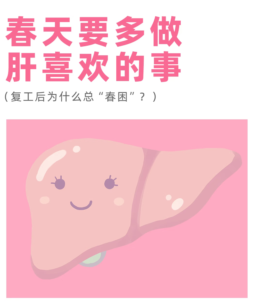 永远十八岁 春天要多做肝喜欢的事 肝火旺盛,人就容易犯困,疲惫,这就代表你要好好养肝了。赶紧把握即将到来的春天,养肝事半功倍!