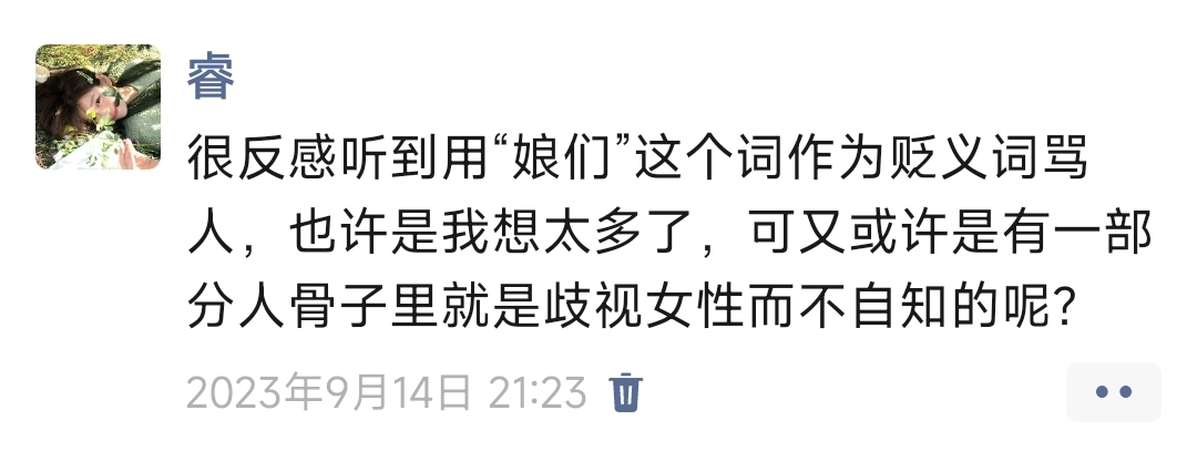 特别开心。三年前在番茄里发的对潜意识厌女词汇的思考,起初几乎全是反对甚至辱骂,当时蛮崩溃。慢慢地赞和支持的评论越来越多,也更坚定地肯定我的想法,越来越多的女性变得敏锐让我好开心🤗#深度思考#